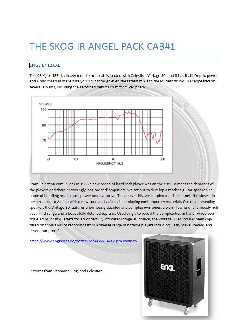 The ANGEL pack is one that's focused on modern, "djenty "midrange. One IR = one sound. The character of that huge cab is truly unique in the sens of focus and punch and those IR's really represent it well. The IR's are made with all sorts of different settings in mind, some are better for leads, some are better for rhythm, but all of them will work with a minimal of EQ added.
